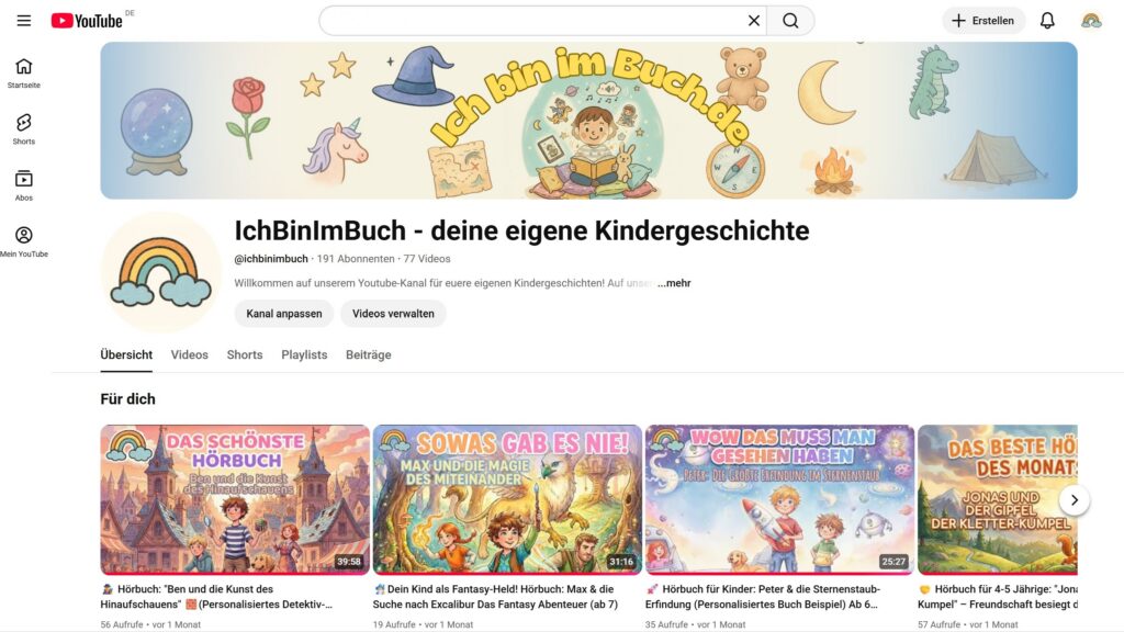 Erlebt, wie euer Kind durch eine eigene Geschichte inspiriert wird, zu Träumen, zu Lernen oder seine Ängste zu überwinden. Nur ein paar Fragen frei beantworten und schon erschaffen wir mit der Hilfe von KI ein komplett neues Kinderbuch mit eurem Kind im Mittelpunkt